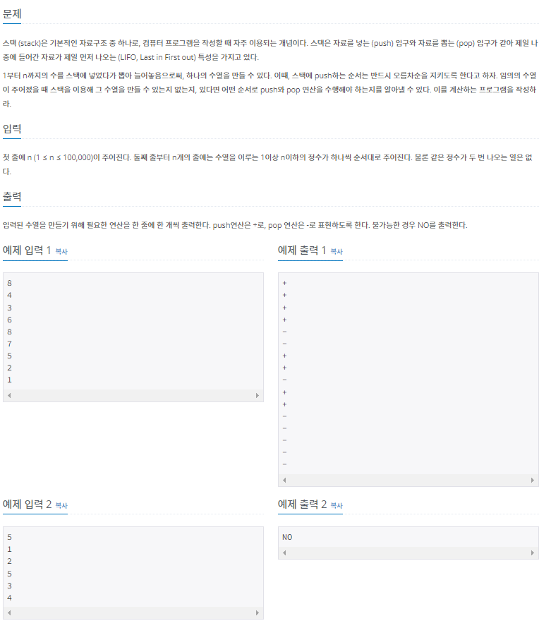 https://www.acmicpc.net/problem/1874