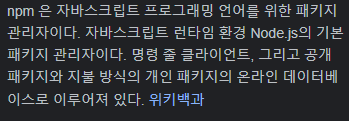 쉽게 말하면 npm을 통해 Node.js와 상호작용이 가능하다.