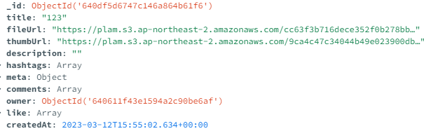 이렇게 작성하고 video를 콘솔에 찍어보면 id도 생성되어 있는 것을 볼 수 있는데,