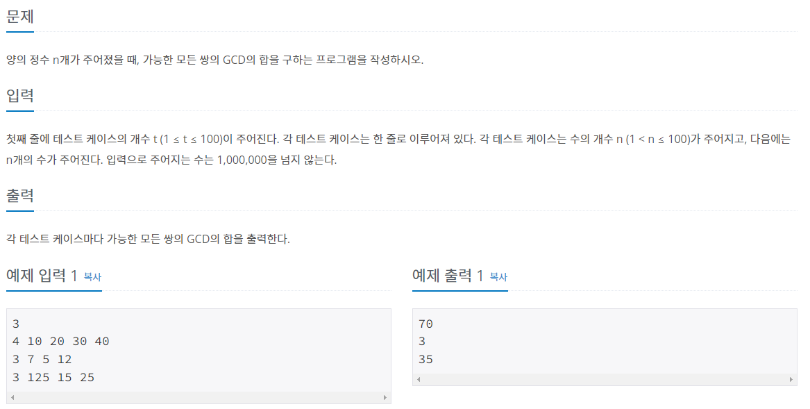 https://www.acmicpc.net/problem/9613
