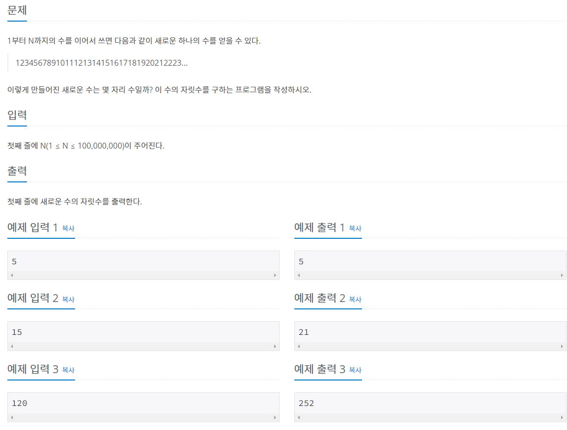따라서 반복문으로 자릿수에 맞는 개수를 우선 구해주고(1단위면 1번, 10단위면 2번...)