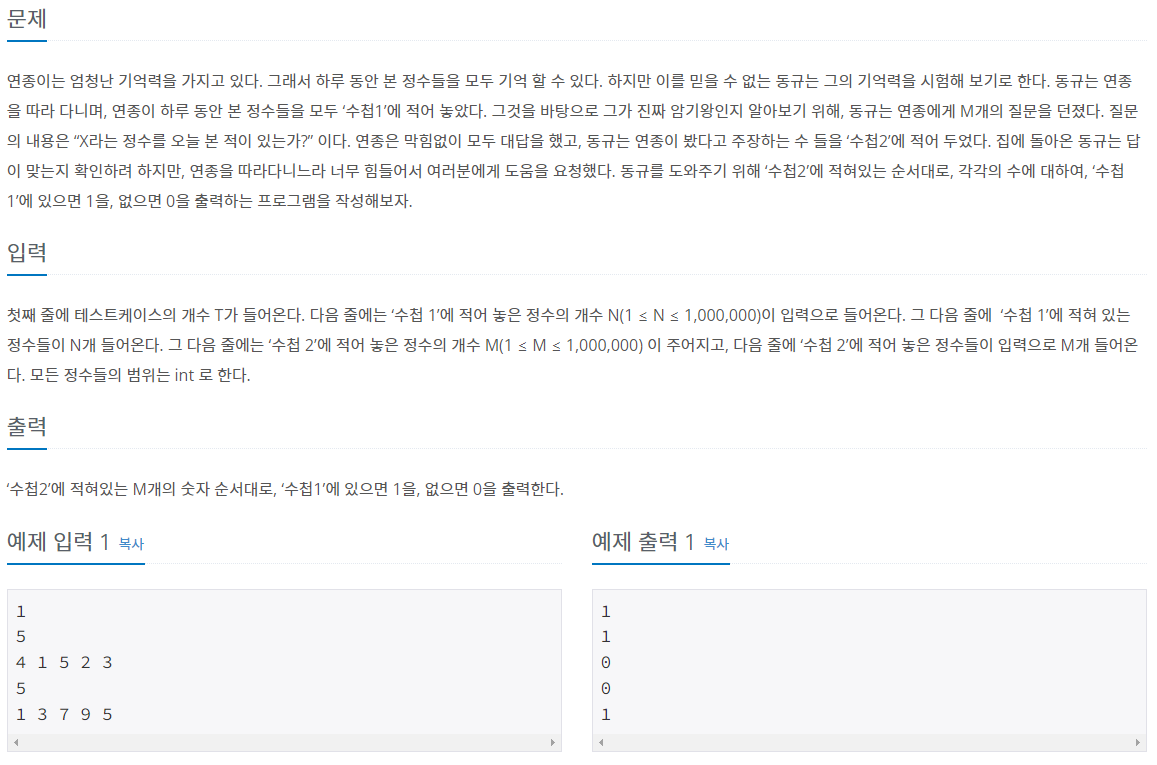 1번 노트는 숫자가 중복으로 올 이유가 없기 때문에 set으로 받아준다.