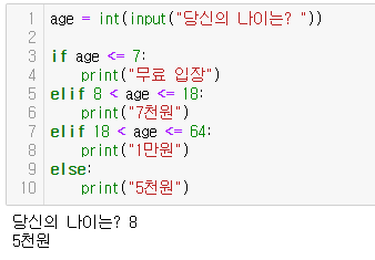 또 다른 조건을 달고 싶을 때 elif를 사용합니다.