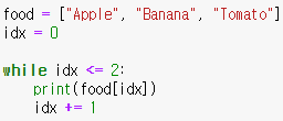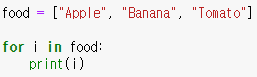 처음에는 Apple, 그다음 반복이 될 때는 Banana, 마지막에는 Tomato가 되는 것이죠.