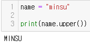 upper() 메소드는 입력받은 문자열을 대문자로 반환해 줍니다.