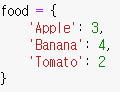 Tomato라는 키는 2라는 밸류를 갖습니다.