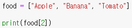 이렇게 리스트의 뒤에 대괄호를 붙여서 숫자를 넣어주면 해당 위치의 값만 나오게 됩니다.