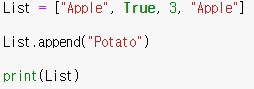 append는 리스트의 끝부분에 해당 요소를 추가해 줍니다.