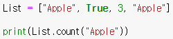 count라는 메소드는 해당 리스트 안에 목표하는 원소의 개수를 세줍니다.