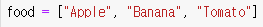 그래서 0은 'Apple' 1은 'Banana' 2가 'Tomato'가 됩니다.