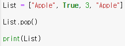 pop은 리스트의 끝에 있는 요소를 제거합니다.