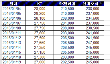 이런 식으로 해당 주식의 코드와 시작일, 종료일을 정해주면 해당 주식의 주가를 받아와 줍니다.
