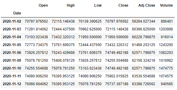 이 데이터의 경우 Index가 일자인 Pandas의 DataFrame입니다.