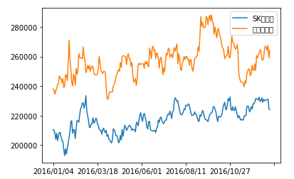 df.plot(y = ["SK텔레콤", "현대모비스"])