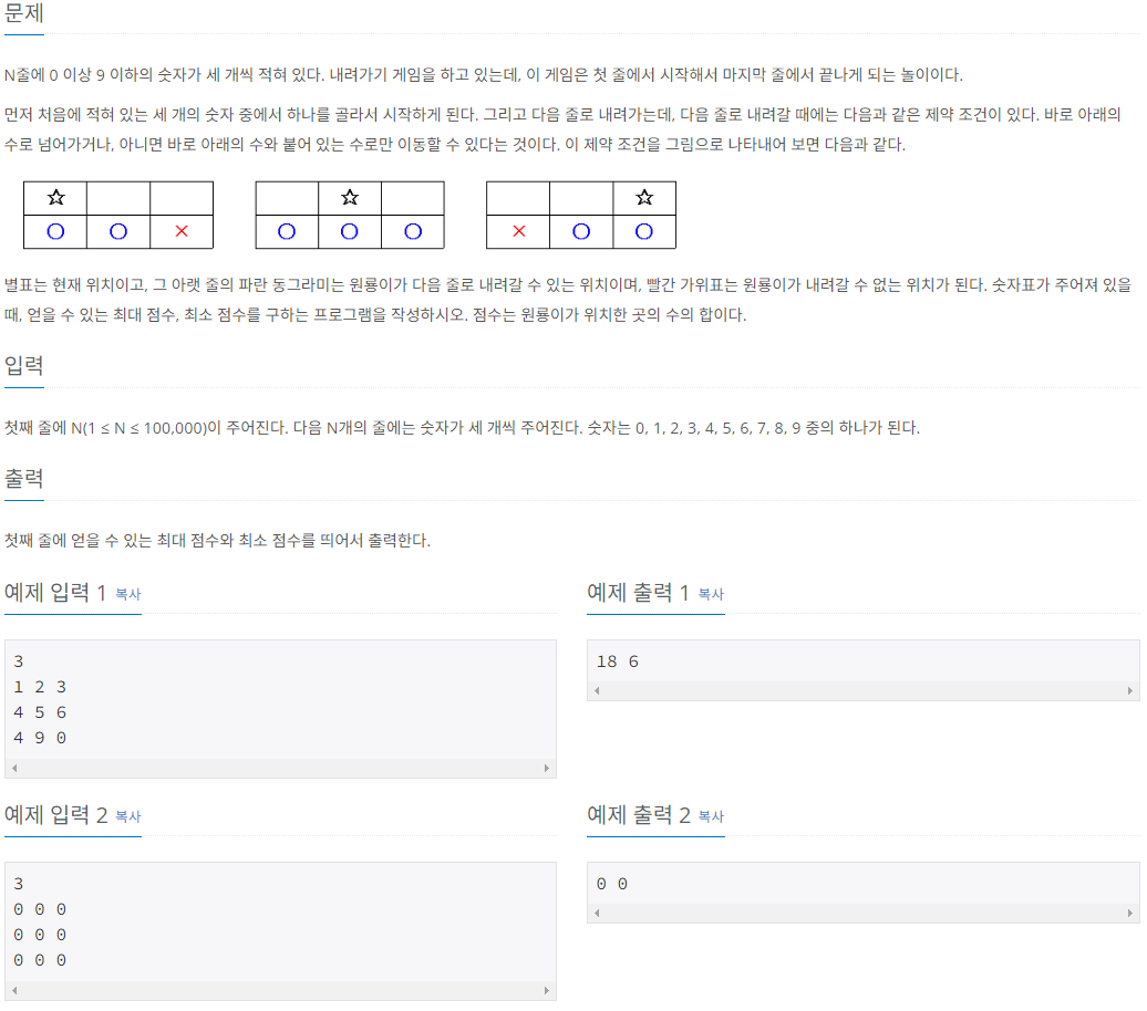 1번 칸의 경우 윗 줄의 1번, 2번 중에 제일 큰 수와 현재 줄의 1번 칸의 합