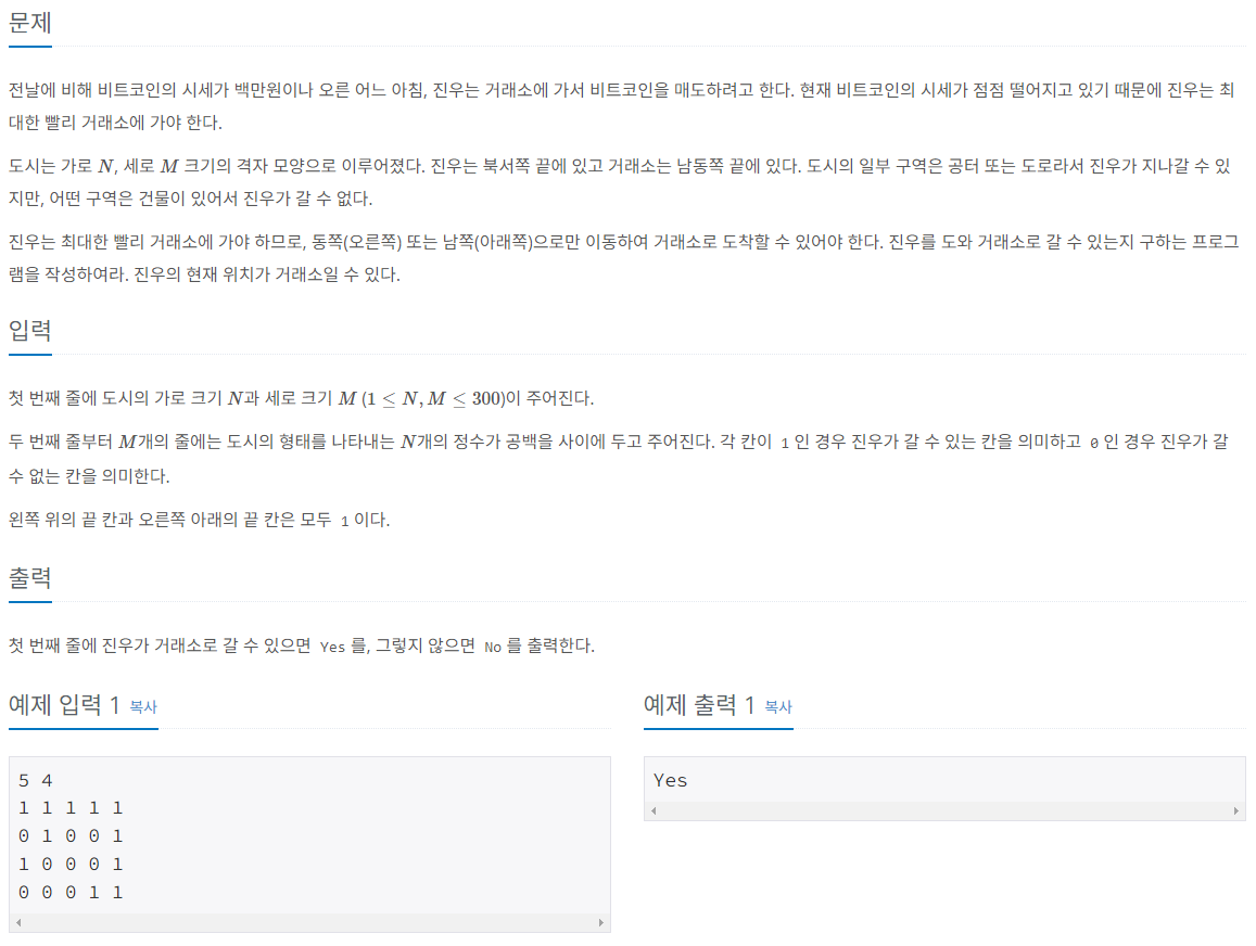 흔한 BFS 문제였는데 동쪽과 남쪽으로만 이동한다는 조건을 놓쳐서 잠시 헤맨 문제였다.