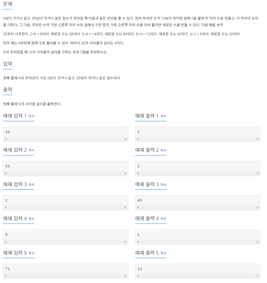 1110번: 더하기 사이클