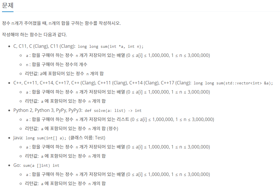 파이썬의 문제를 보면 a는 합을 구해야 하는 정수가 저장되어 있는 리스트라고 한다.