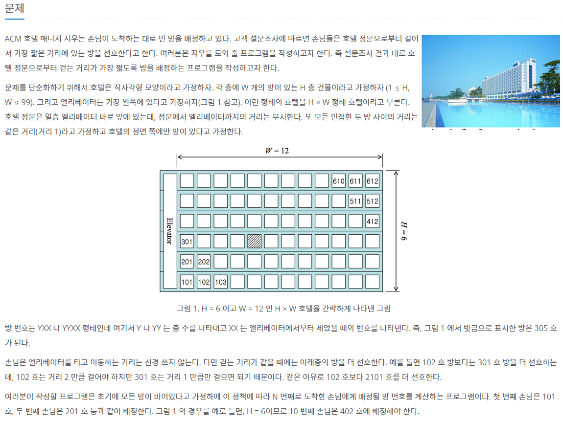 방 번호는 (n / h)에 ceil이라는 함수를 썼는데,
