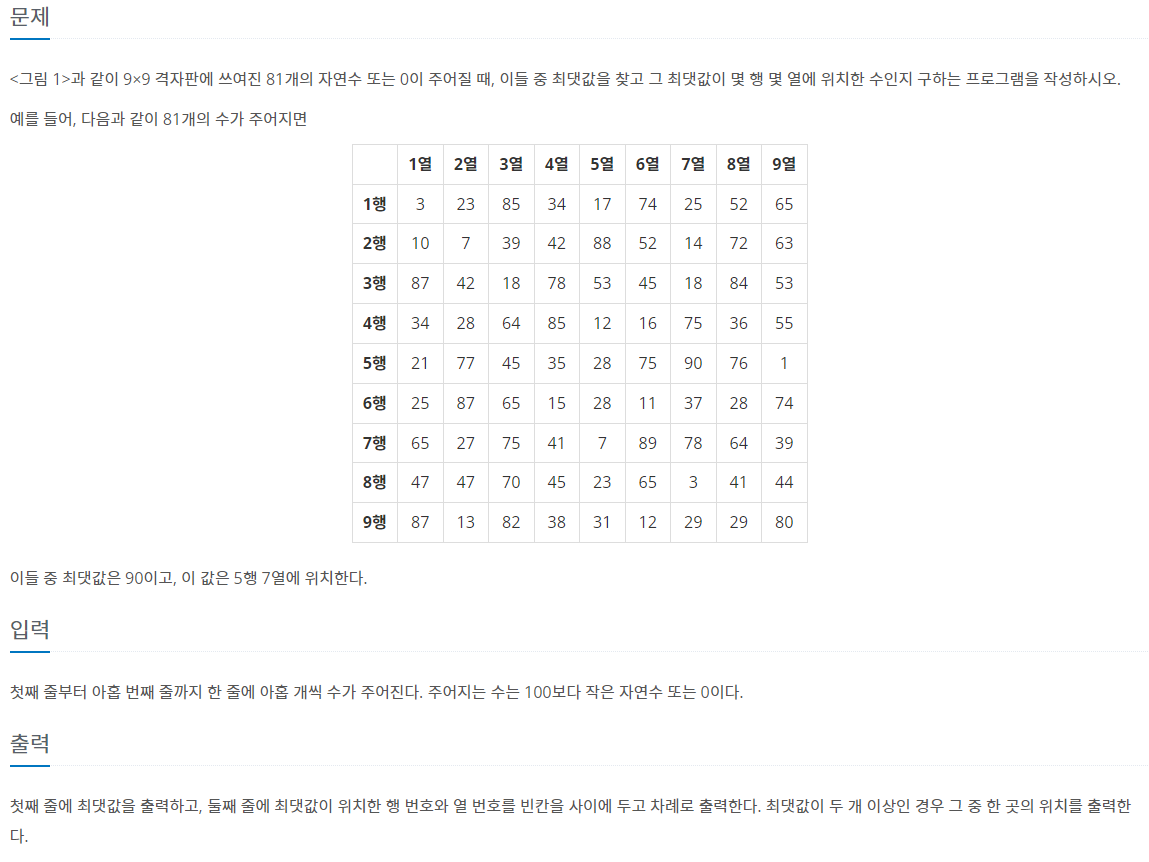 2566번: 최댓값