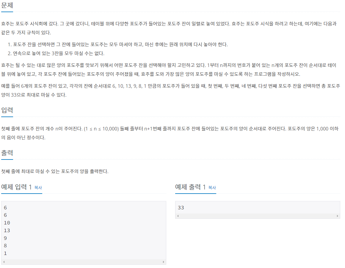 문제 https://www.acmicpc.net/problem/1912 1912번: 연속합 첫째 줄에 정수 n(1 ≤ n ≤ 100,000)이 주어지고 둘째 줄에는 n개의 정수로 이루어진 수열이 주어진다. 수는 -1,000보다 크거나 같고, 1,000보다 작거나 같은 정수이다. www.acmicpc.net 코드 n = int(input()) num = list(map(int,input().split())) dp = [-1001] * (n+1) for i in range(n): dp[i+1] = max(num[i], num[i] + dp[i]) print(max(dp)) 설명 우선 입력을 각각 받아준다. 그리고 dp를 -1001의 n+1개로 초기화 해준다. 수의 범위가 -1000