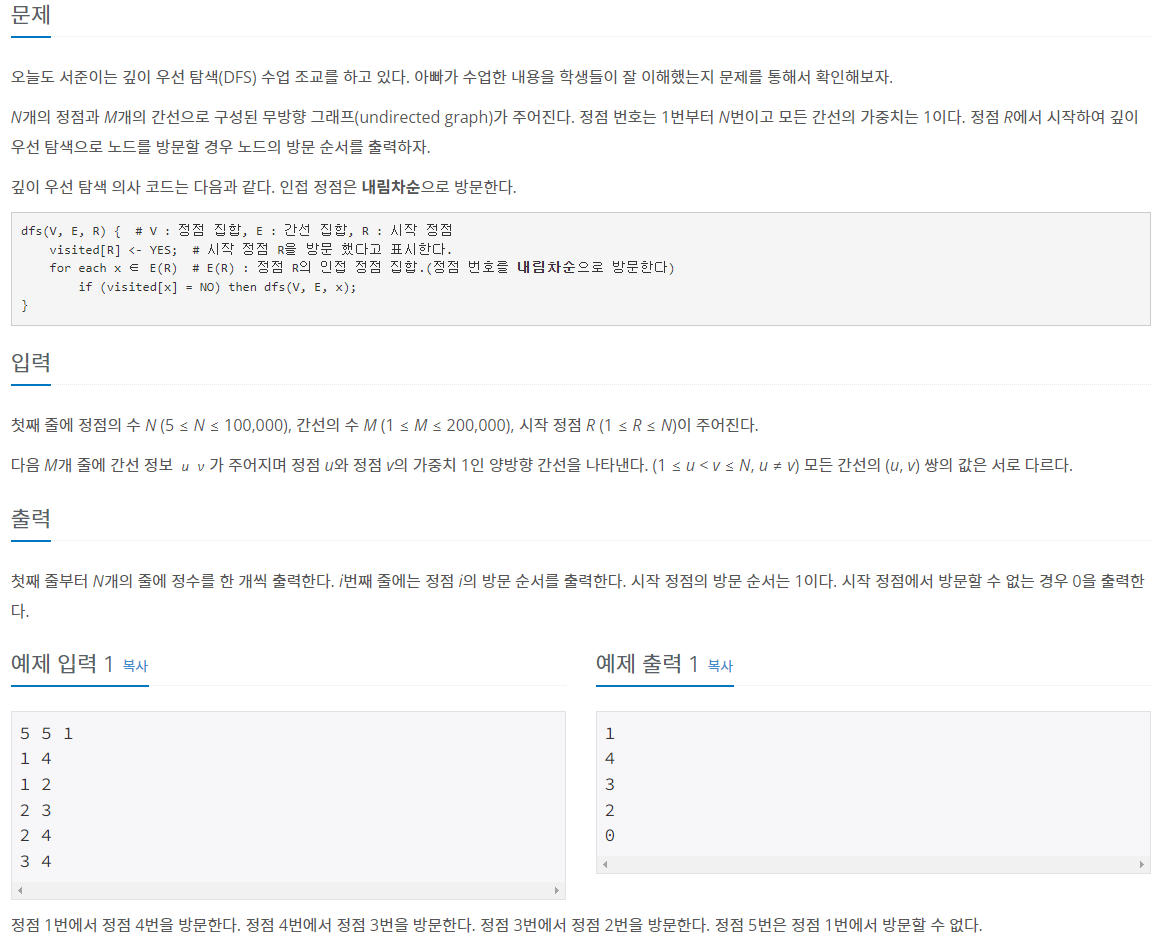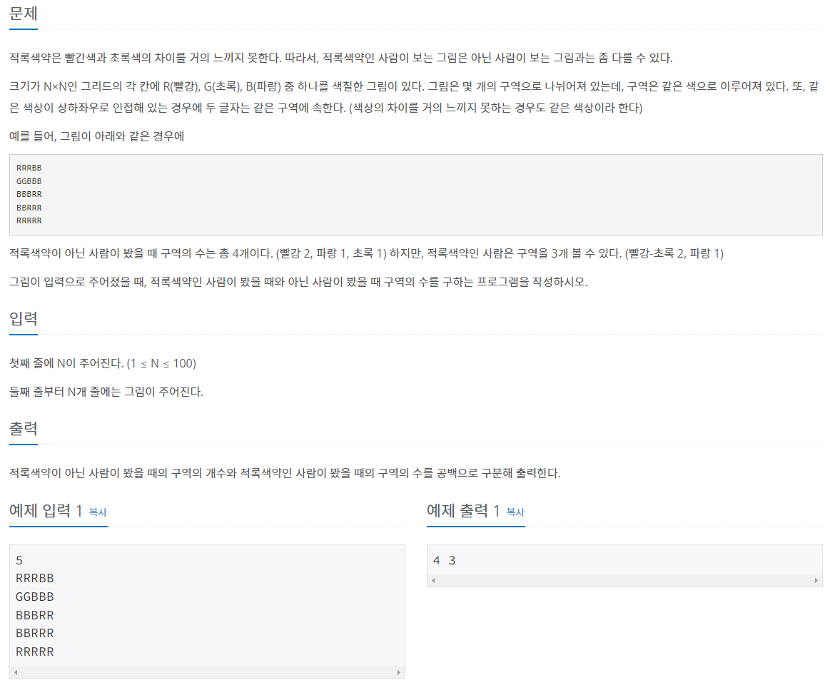 문제 https://www.acmicpc.net/problem/4963 4963번: 섬의 개수 입력은 여러 개의 테스트 케이스로 이루어져 있다. 각 테스트 케이스의 첫째 줄에는 지도의 너비 w와 높이 h가 주어진다. w와 h는 50보다 작거나 같은 양의 정수이다. 둘째 줄부터 h개 줄에는 지도 www.acmicpc.net 코드 import sys sys.setrecursionlimit(10**6) dx = [1, 1, -1, -1, 1, -1, 0, 0] dy = [0, 1, 0, 1, -1, -1, 1, -1] def dfs(x, y): land[x][y] = 0 for i in range(8): nx = x + dx[i] ny = y + dy[i] if 0